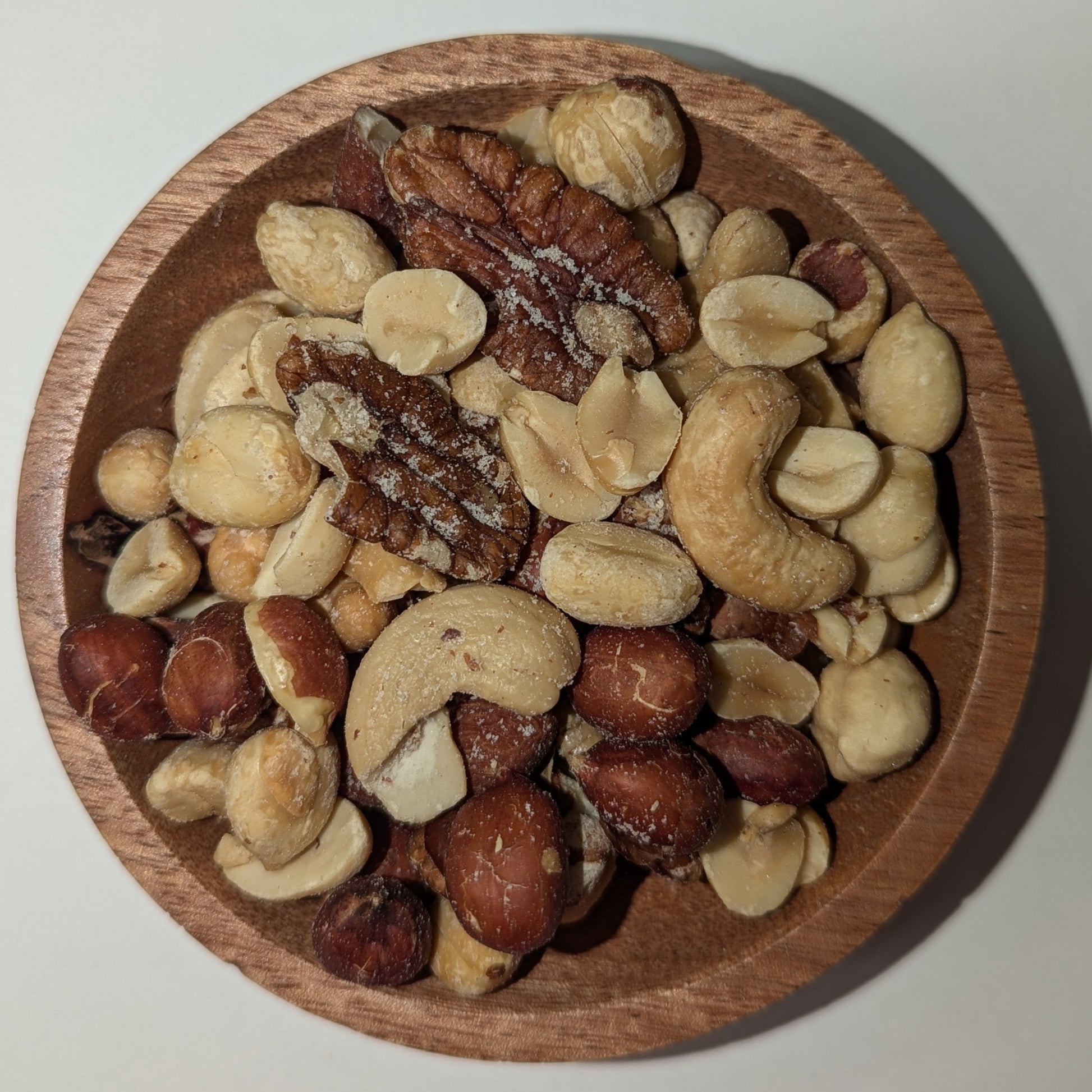 Ingredients: Peanuts, Cashews, Almonds, Pecans, Brazils, Filberts, Peanut Oil, Salt